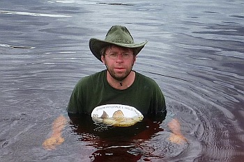 Zur Person: Ernst Schmidt, Jahrgang 1962, wurde im fränkischen Neuendettelsau geboren. Der gelernte Schreiner ist verheiratet und hat zwei Kinder. Schon früh kam er mit Wasser und den darin lebenden Tieren in Berührung, da sein Großvater mehrere Weiher besaß. Mit 12 Jahren bekam er sein erstes Aquarium und ist seit dem Aquarianer mit Leib und Seele. Als Züchter spezialisierte der sich dann auf seltene L-Welse, Salmler und Pfeilgiftfrösche. Ihm ist es hierbei wichtig, insbesondere die seltenen Arten zu erhalten. Zu seinen größten Erfolgen zählen die Nachzucht von L 236, L 183 und der Diskus-Wildform „Tefé“.