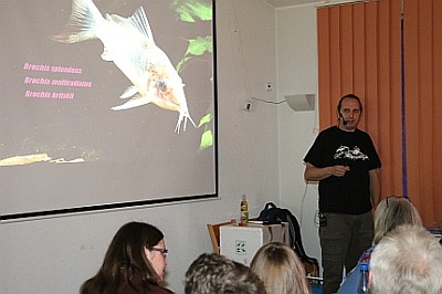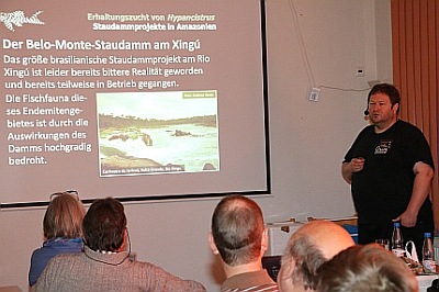 Buchautor Ingo Seidel zeigte in seinem Vortrag "Erhaltungszucht von Hypancistrus-Arten aus dem Rio Xingu" Fotos der natürlichen Lebensräume und ging anschließend auf die Zucht dieser Welse im Aquarium ein. Er motivierte die Teilnehmer bei der Zucht zu unterstützen, um einige Arten zu erhalten.